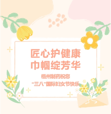 匠心護(hù)健康巾幗綻芳華梧州制藥祝您“三八”國際婦女節(jié)快樂春風(fēng)送暖,芳華綻放在第116個(gè)“三八” 國際婦女節(jié)到來之際梧州制藥向每一位了不起的她致以最誠摯的祝福與敬意!祝全體女性朋友“三八”國際婦女節(jié)快樂!END圖文|