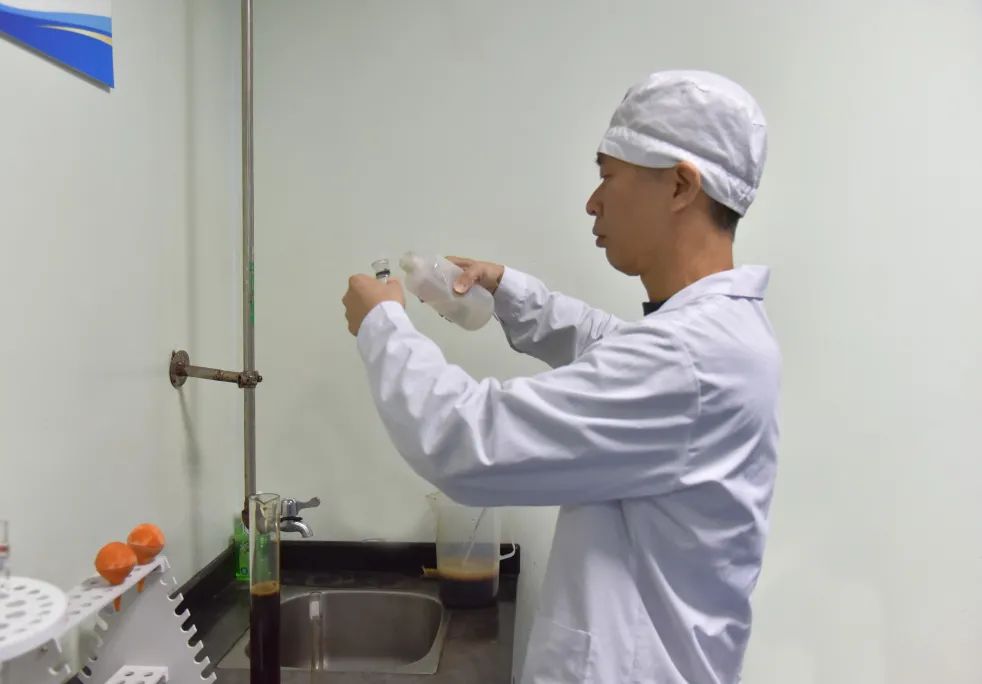 每天的原輔料復(fù)核、配料定容、密度檢測(cè)、PH值檢驗(yàn)、性狀分析、產(chǎn)品外觀鑒別等,一批次下來多達(dá)60多項(xiàng)的指標(biāo)檢驗(yàn),形成生產(chǎn)記錄,出具檢驗(yàn)報(bào)告……這些在外人看來瑣碎而平凡的工作,卻是阿國(guó)的常態(tài),更是公司執(zhí)行GMP管理的必須。