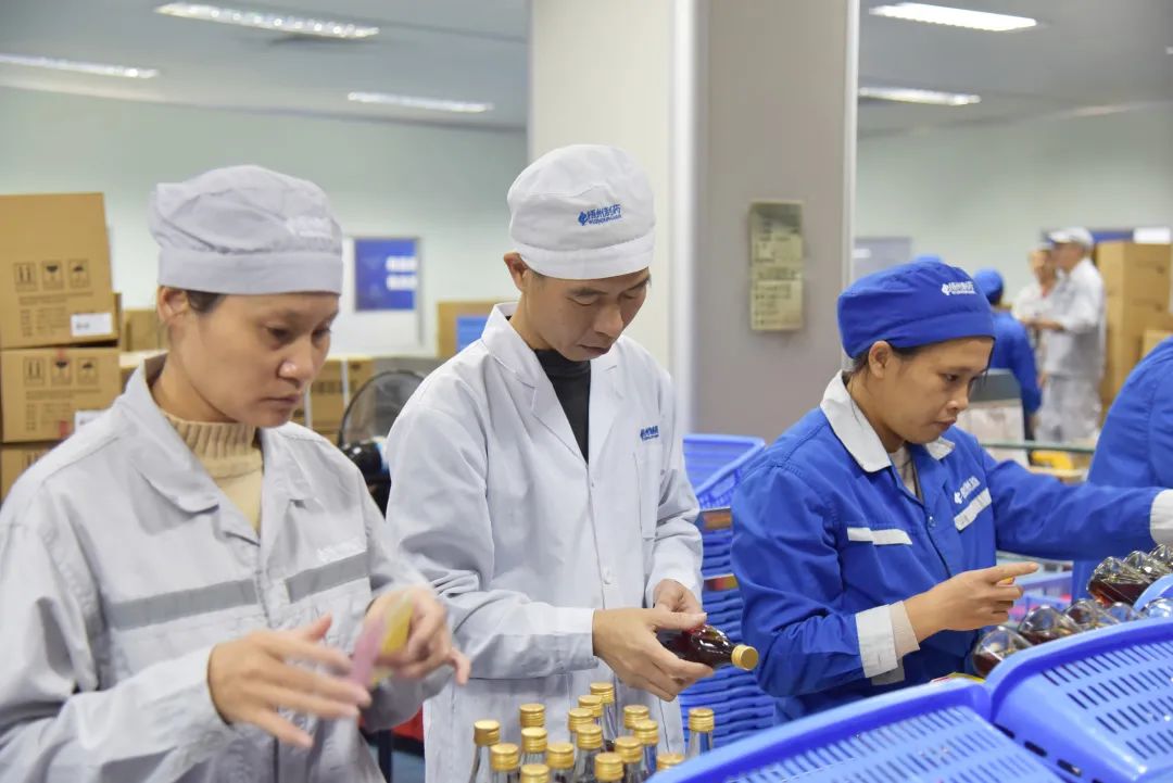 7:50配料開始,8:50灌裝間機(jī)器聲響起,9:00洗瓶間人員已經(jīng)忙碌而有條不紊工作起來,待前端各工序正常運(yùn)行后,他又往包裝區(qū)域巡場(chǎng),“阿嬌,這張產(chǎn)品合格證印得不太清楚,換一張吧?!薄皟蓚€(gè)批號(hào)不一樣的,阿炳你搬箱時(shí)注意一下。”“新人初來乍到,對(duì)于包裝不熟手很正常,產(chǎn)品需要多抽檢,新人亦要多提醒。”多年的工作經(jīng)驗(yàn),讓他在巡檢中準(zhǔn)確快速地根據(jù)當(dāng)前狀態(tài)捕捉到質(zhì)量控制關(guān)鍵點(diǎn)。