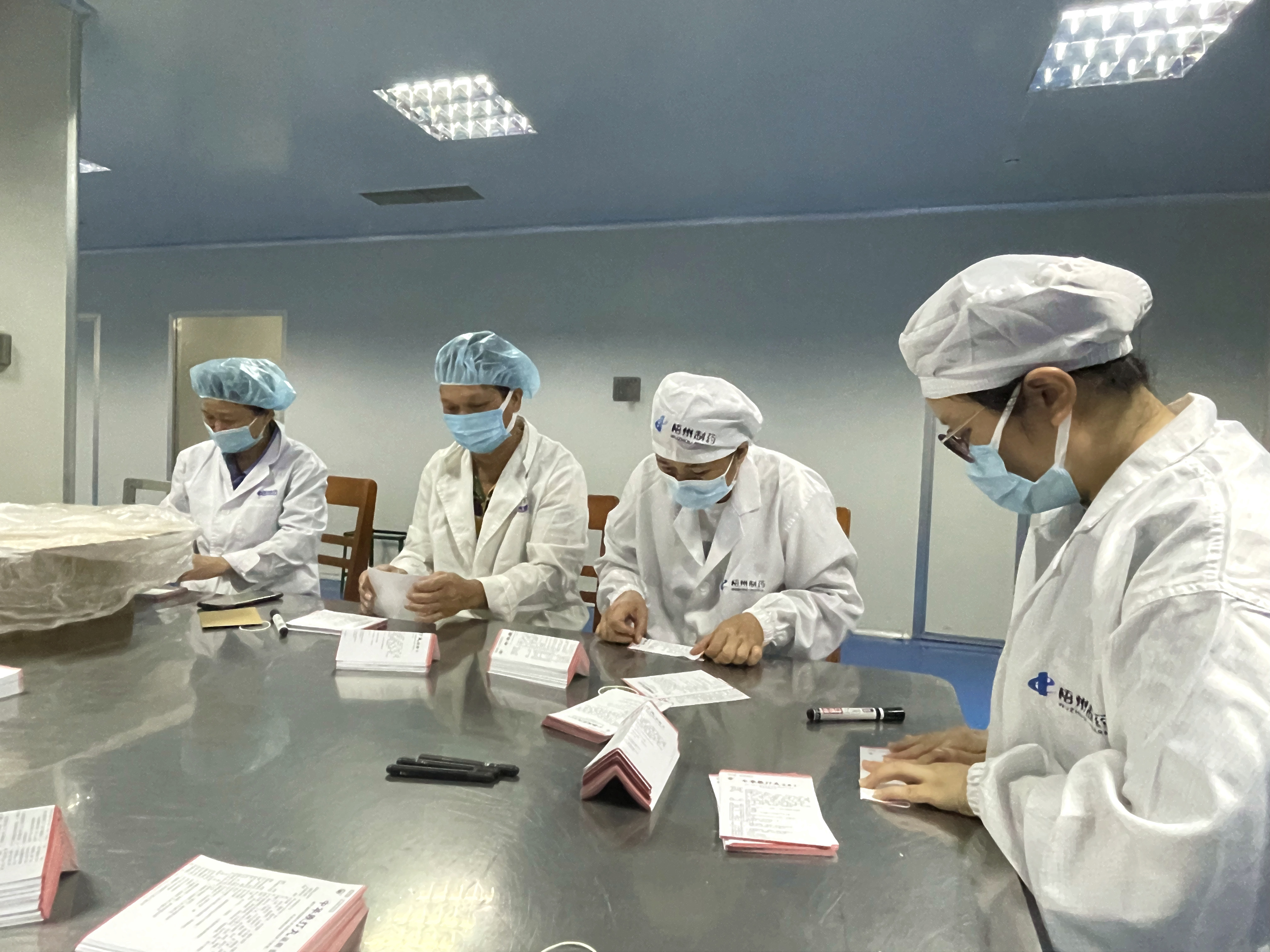 每天下午4點過后,志愿者們都會來到固體車間,穿上白大褂、戴上帽子、鞋套、手套,變身一線生產(chǎn)工人,在專業(yè)師傅的指導(dǎo)下,由一開始的手忙腳亂,到后來的得心應(yīng)手,井然有序地開展中華跌打丸入托、入籃、折說明書等工序工作,現(xiàn)場呈現(xiàn)出一片熱火朝天、你追我趕的勞動場面,志愿者的到來使中華跌打丸的日產(chǎn)量得到了提升。