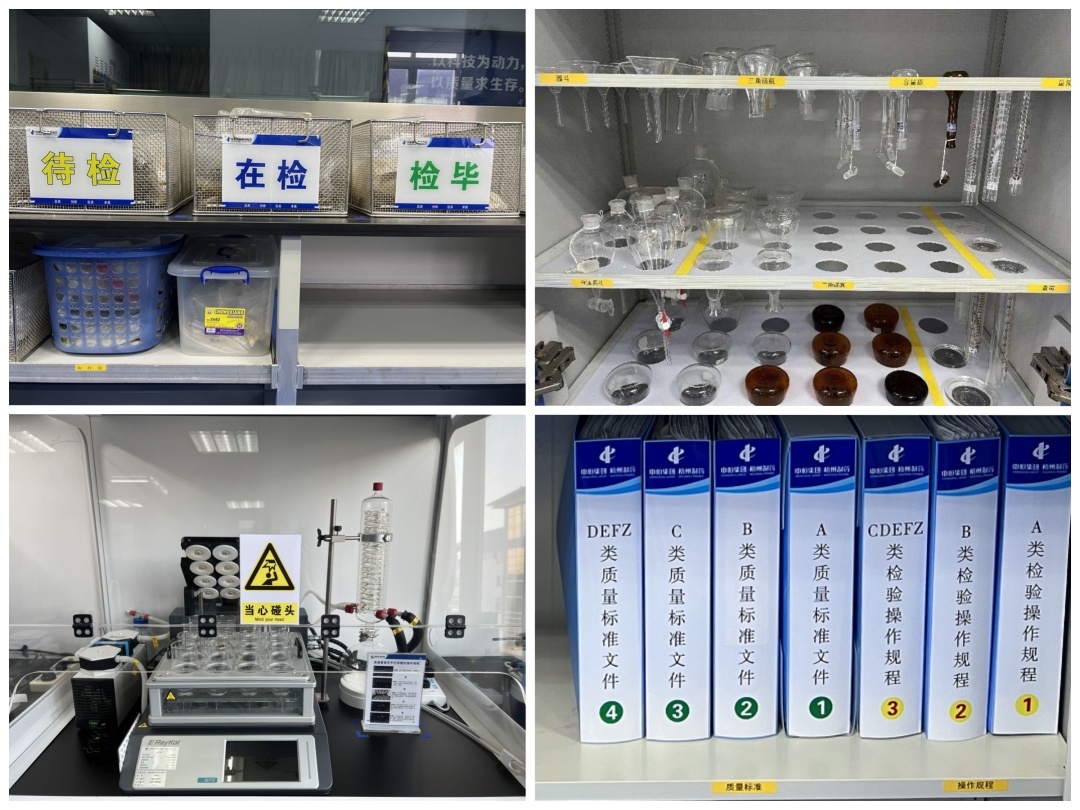 質(zhì)量是企業(yè)的根本。在質(zhì)量控制工作中,每個(gè)細(xì)微環(huán)節(jié)都需要認(rèn)真細(xì)致、規(guī)范操作,才能保證結(jié)果精準(zhǔn)無(wú)誤。質(zhì)量控制部通過(guò)改善實(shí)驗(yàn)室環(huán)境,保證檢驗(yàn)操作正確開(kāi)展。樣品按待檢、在檢、檢畢分顏色擺放,操作不易弄混。對(duì)文件、物品進(jìn)行分區(qū)定置,使用定位膠帶或分隔板進(jìn)行分隔,便于快速、準(zhǔn)確查找。在檢驗(yàn)儀器旁定置圖文并茂的操作規(guī)程,便于閱讀,提高了檢驗(yàn)人員操作的準(zhǔn)確率。這一系列舉措使得檢驗(yàn)環(huán)境大大改善,提高了檢驗(yàn)人員的效率與準(zhǔn)確率。