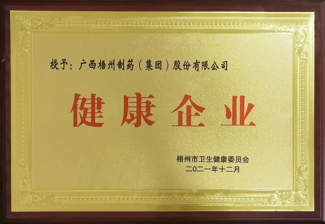 榜上有名丨梧州制藥喜獲 “自治區(qū)級(jí)健康企業(yè)”稱(chēng)號(hào)