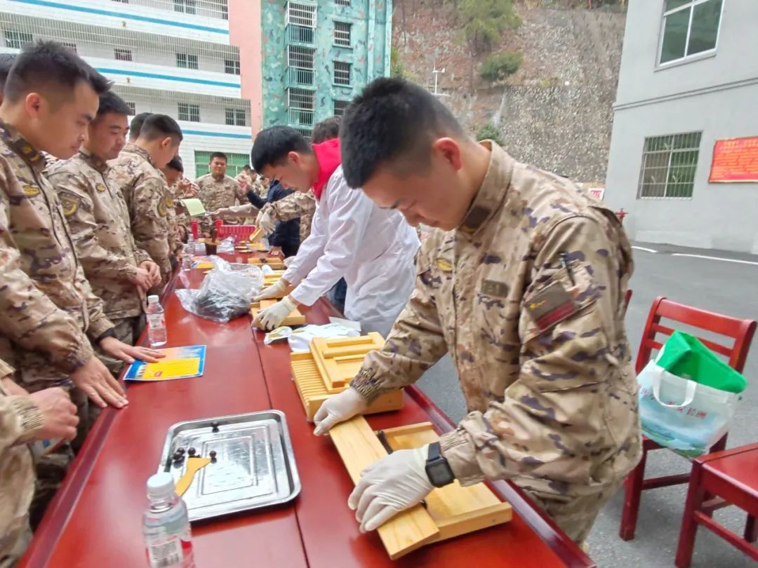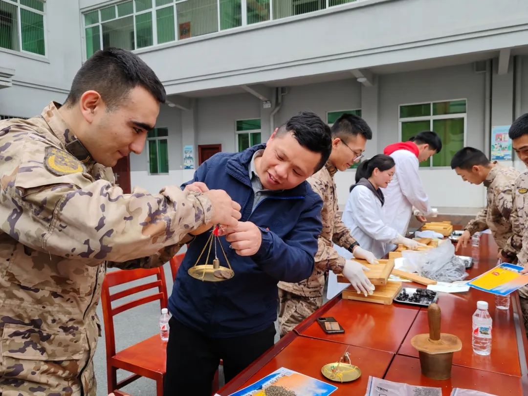 戥子、杵臼、搓丸板,這些平日很少接觸到的中藥傳統(tǒng)制藥工具,觸發(fā)起武警官兵們強烈的好奇心和探知欲,興致勃勃地嘗試操作,紛紛參與體驗中華跌打丸制作技藝,從制丸條到成功搓制成丸,每一道工序無不感受著非遺文化獨特的魅力。