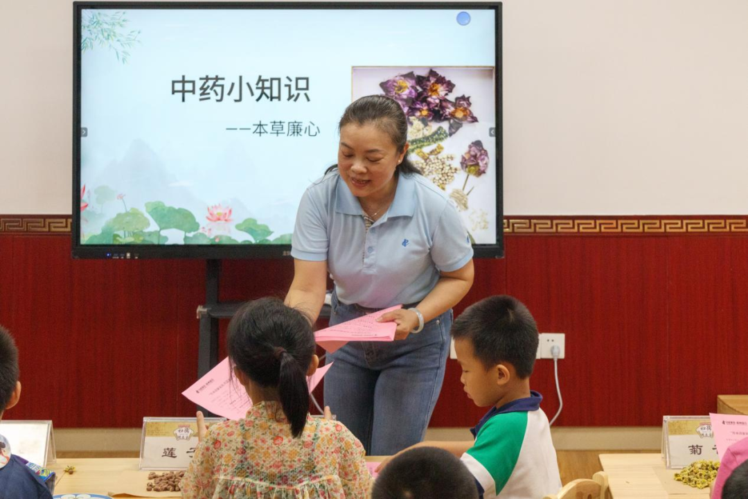 活動以朗誦葉劍英家書開篇,家長與孩子深情共讀,勾勒出一幅風(fēng)清氣正的和美畫卷。在“中藥小知識——本草廉心”小課堂里,工作人員展示淡竹葉、蓮子、荷葉等清心類藥材標(biāo)本,孩子們在家長陪伴下觀察形態(tài)、嗅聞氣味、參與趣味問答,感受中醫(yī)藥文化的獨(dú)特魅力,讓古老中醫(yī)藥文化在孩子們心中“鮮活”起來。