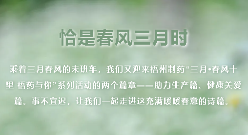 恰是春風三月時乘著三月春風的末班車,我們又迎來梧州制藥“三月?春風十里 梧藥與你”系列活動的兩個篇章——助力生產篇、健康關愛篇。事不宜遲,讓我們一起走進這充滿暖暖春意的詩篇?!局ιa篇】凝聚“志愿紅”協(xié)力助