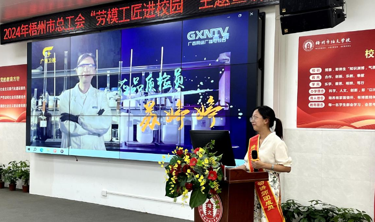 宣講勞動故事傳播梧藥精神“勞模工匠進校園”主題宣講活動近日,梧州制藥質(zhì)量控制部主管蘇婷婷作為勞模代表走進梧州市培文學(xué)校進行2024“勞模工匠進校園”主題宣講。勞動綻放光芒,宣講激發(fā)夢想本次由梧州市總工會、梧州