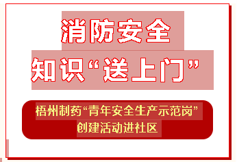 消防安全知識“送上門”梧州制藥“青年安全生產(chǎn)示范崗”創(chuàng)建活動進社區(qū)近日,梧州制藥青年員工積極參與“中恒集團青年安全生產(chǎn)示范崗”創(chuàng)建工作,不但注重將創(chuàng)建活動與日常班組生產(chǎn)工作有機融合,還結(jié)合今年第23個全國安全